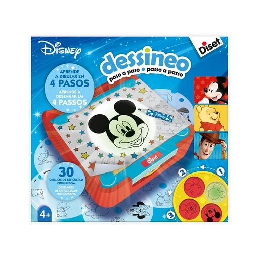 Disney – Dessineo aprende a dibujar paso a paso, un pupitre-maletín para aprender a dibujar personajes Disney en 4 fáciles pasos.
