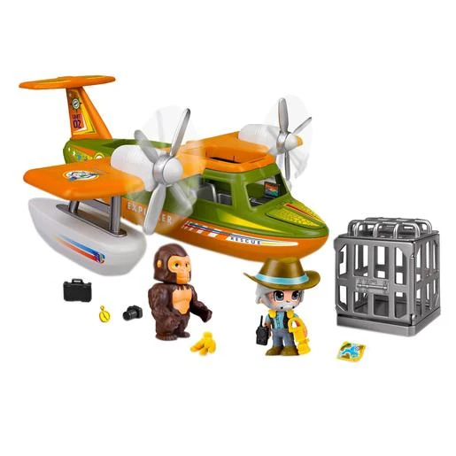 Incluye hidroavión, 2 figuras con piezas intercambiables para hacer divertidas combinaciones y muchos accesorios.