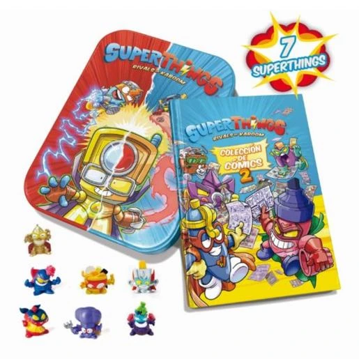 La Lata de Superthings que incluye el libro del Coleccionista de Cómics de las series 4, 5 y Secret Spies.