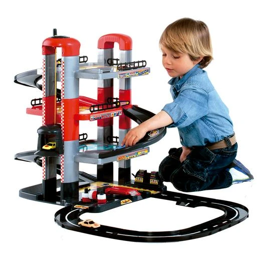 Parking infantil de aventuras para los fans de los coches. Tiene 4 plantas, se comunican entre ellas y mediante pistas inclinadas por donde circulan los coches. Todas las plantas están unidas entre sí por un ascensor. Incluye 1 ascensor para coches, estacionamiento, 2 vehículos, pistas y gasolinera. ¡Con 56 cm de altura! ¡Para horas de entretenimiento y diversión! Exclusivo Toys R Us. Edad recomendada + 3 años.