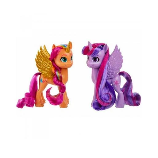 Aquí tienes a Sunny Starscout de My Little Pony: Next Generation y Twilight Sparkle de My Little Pony: La amistad es mágica.