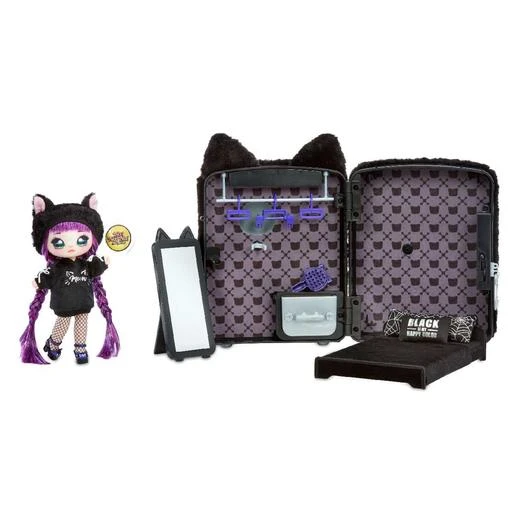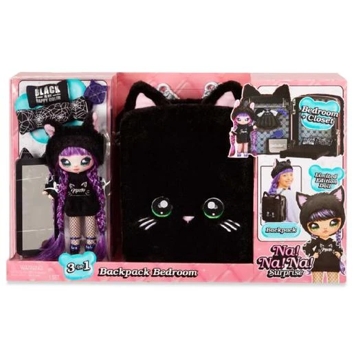 Na! Na! Na! Surprise – Mochila 3 en 1 Black Kitty, una mochila de terciopelo muy original con forma de conejito.