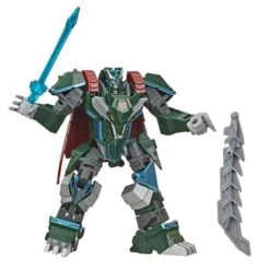 El set incluye un piloto de carreras, un mecánico, una caja de herramientas y una bandera de meta.