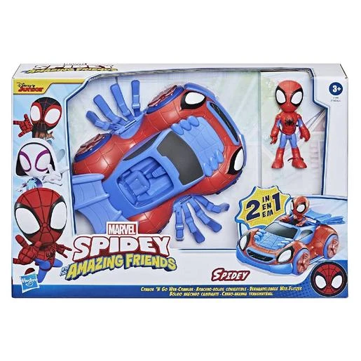 Imagina el mundo sensacional de Spidey como en la serie animada de Marvel en Disney Jr. Inspira un juego audaz y creativo con esta figura de Spidey y su increíble coche.