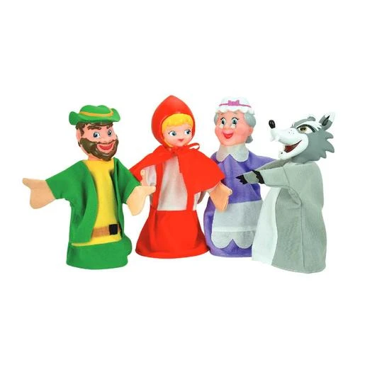 Teatro de Marionetas con 4 personajes, representa el famoso cuento de Caperucita Roja con el teatro de marionetas.
