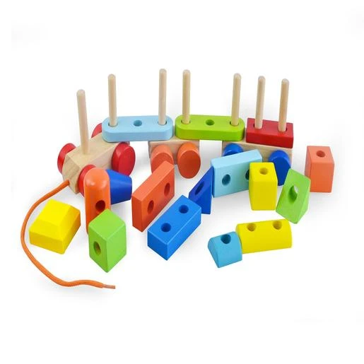 Tren de Bloques de Madera, un tren de juguete en madera que funciona con arrastre.